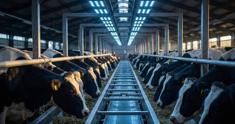 The heart of the operation is a highly mechanized dairy farm featuring advanced milking parlours and "controlled shed" environments to ensure animal welfare and high milk hygiene standards.